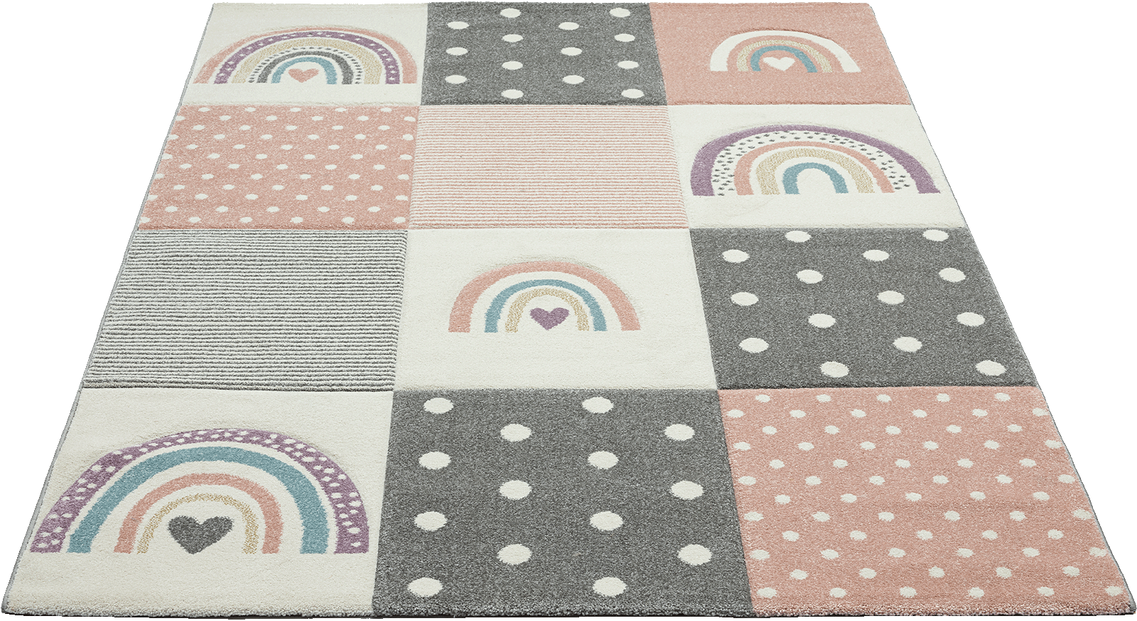 Durch die erhältlichen Farben (grau, rosa und beige) lässt sich dieser Teppich leicht kombinieren. wobei er kindgerechte Motive bietet.